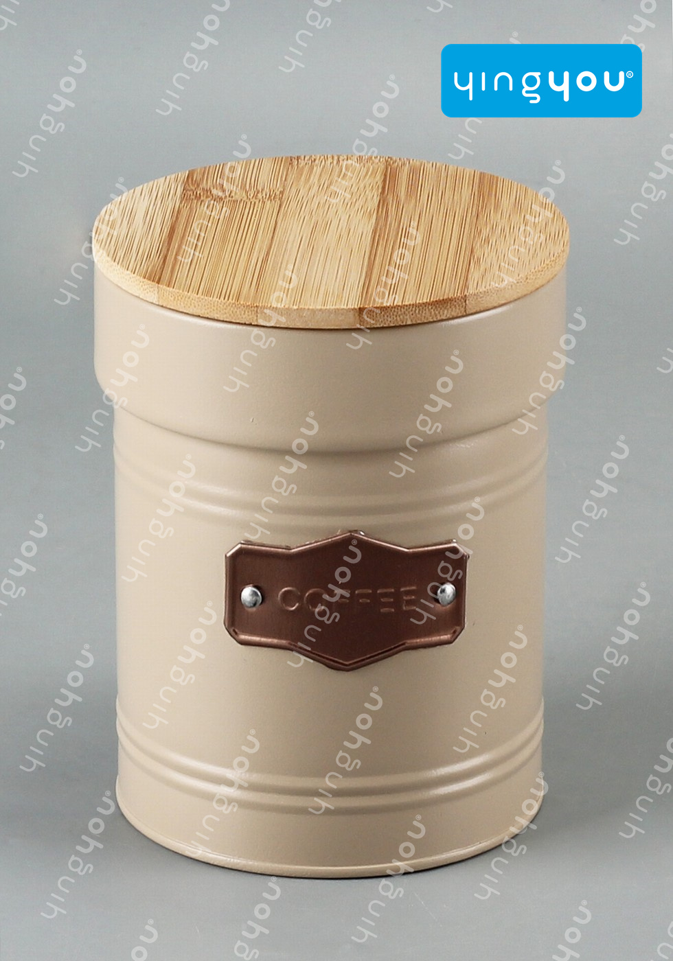 MATERIAL:LID: BAMBOO, WITH SILICONE RING; BODY: POWDER COATING WITH MATTE BRONZE GOLD NAMEPLATE
